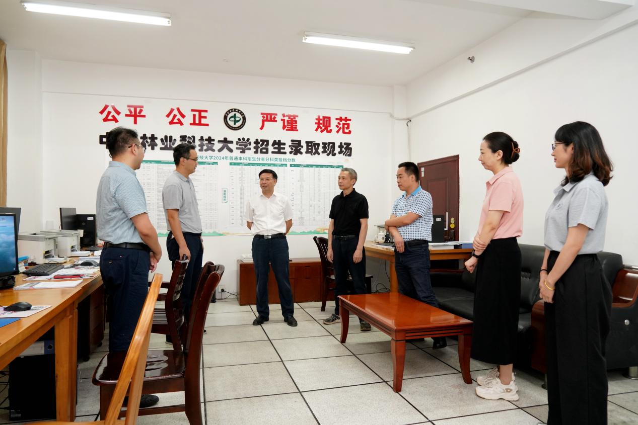 7月23日下午,学校纪委书记、省监委驻校监察专员杨鑫铨专程来到招生就业处本科招生录取现场,检查指导招生录取工作,看望慰问工作人员。